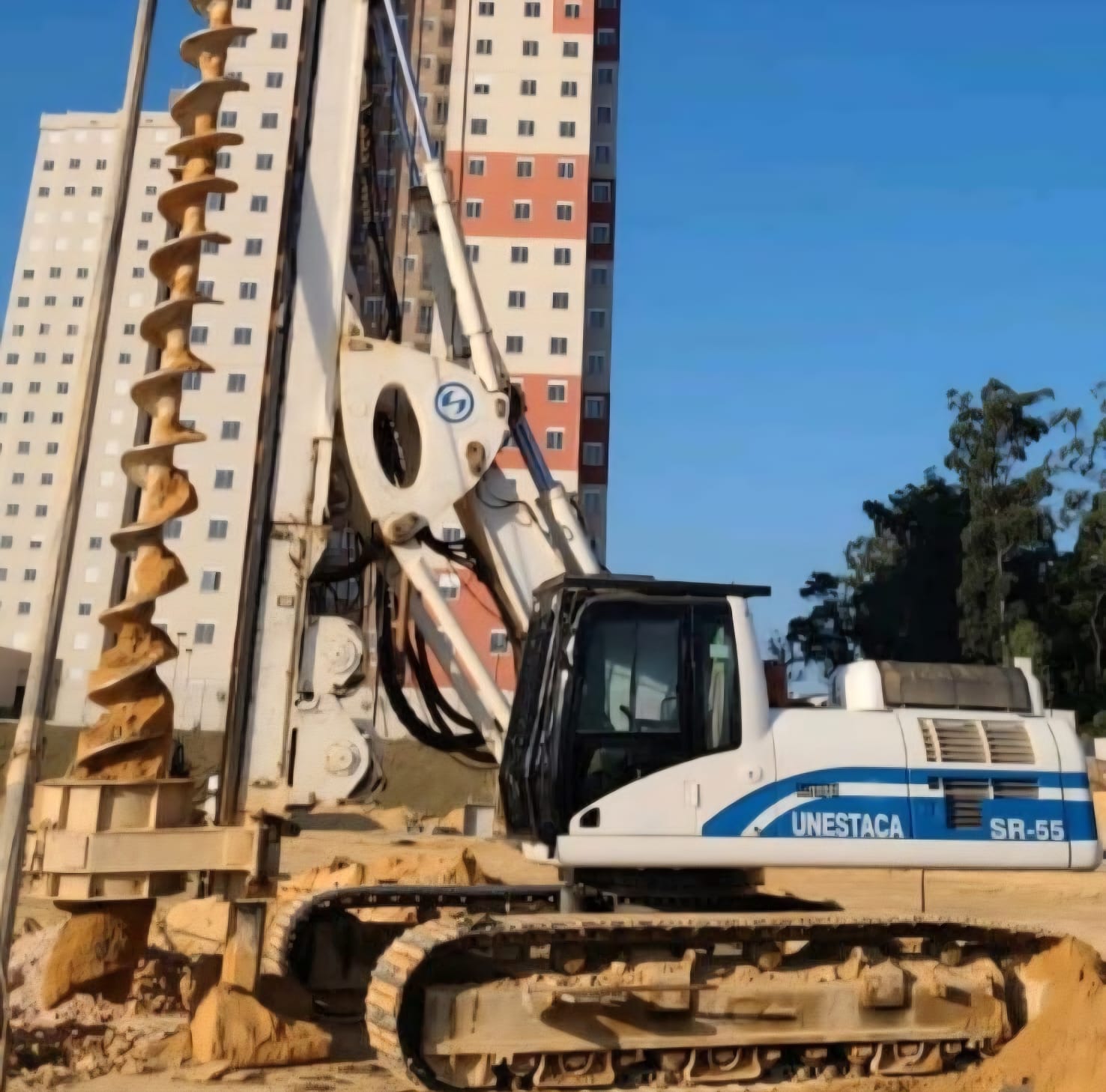 A Unestaca opera com equipamentos modernos utilizados na execução de estacas hélice contínua, garantindo produtividade, precisão e segurança nas operações de fundação.